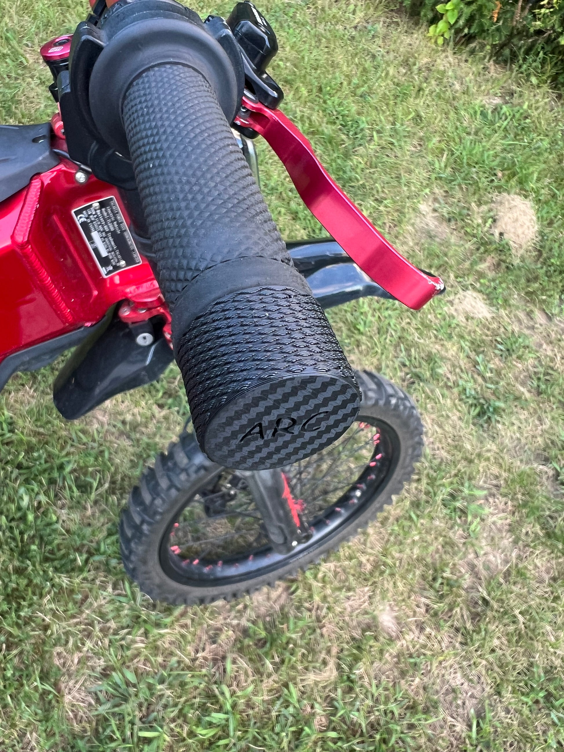 ARC bar ends press in tight for a secure fit that won’t fall out. They take the hit if your Talaria tips, protecting your bars from damage. Finished with a carbon fiber look, knurled grip, and the ARC logo for a clean, custom touch.