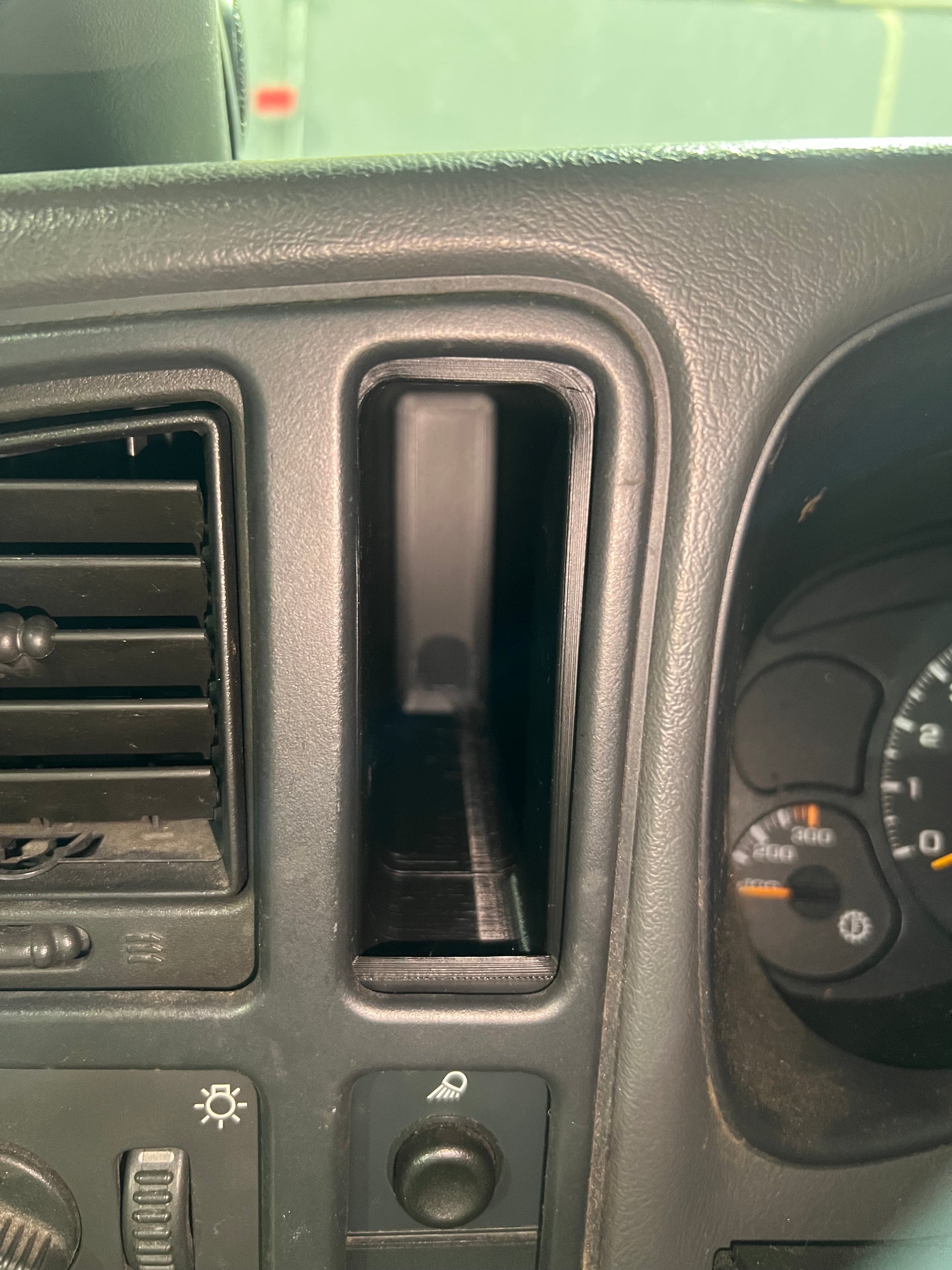 This Slim extended dash pocket replaces the shallow factory pocket found in early to mid-2000s Chevy and GMC work trucks, turning wasted space into usable, functional storage. It extends deeper into the dash while maintaining a narrow, low-profile design that looks clean.